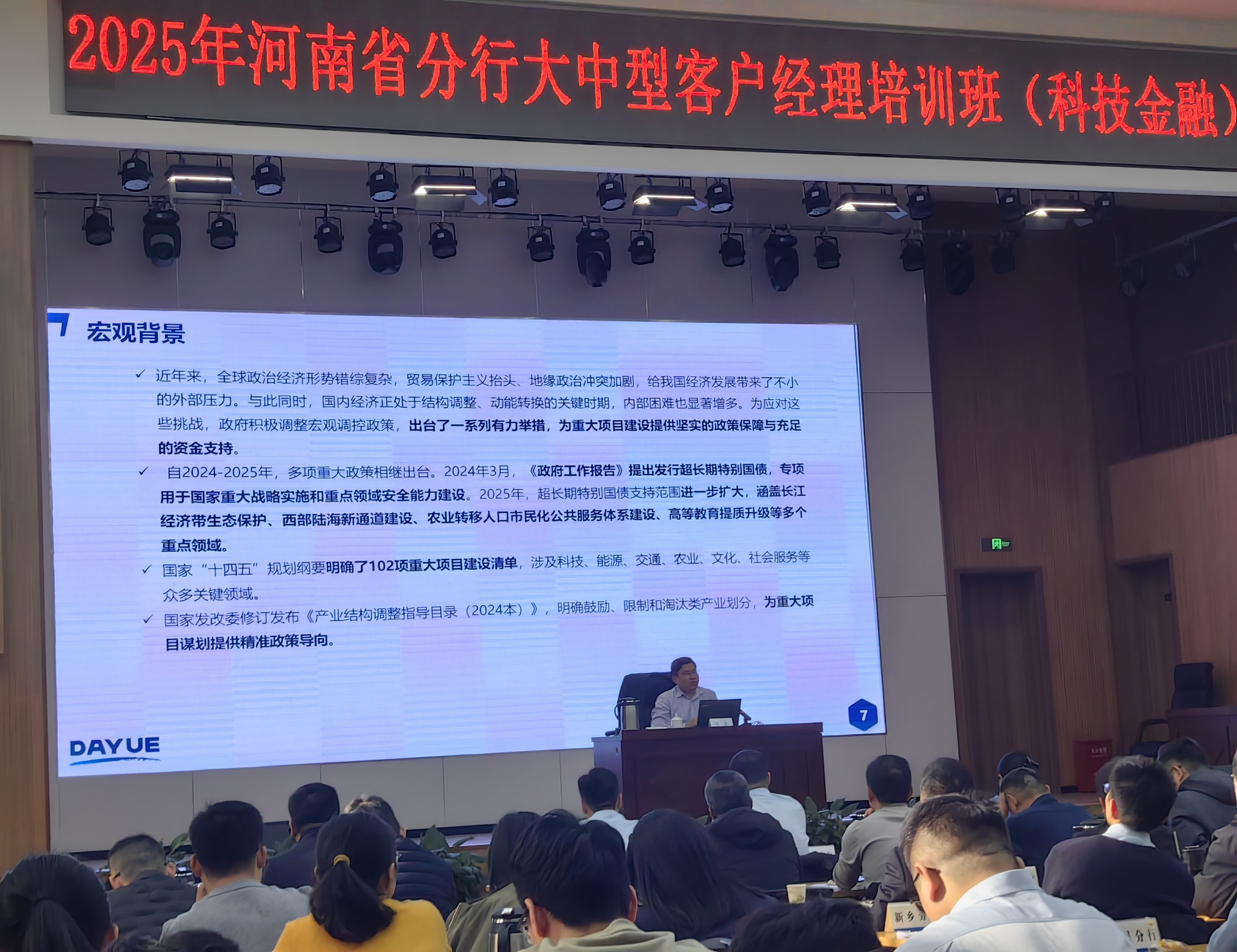 為推動全行科技金融業(yè)務(wù)快速健康發(fā)展,建設(shè)銀行河南省分行于2025年11月26日-28日舉辦“2025年河南省分行業(yè)務(wù)部大中型客戶經(jīng)理培訓(xùn)班(科技金融)”。大岳咨詢董事總經(jīng)理劉冰應(yīng)邀就“新形勢下金融機(jī)構(gòu)參與地方基礎(chǔ)設(shè)施投融資模式與典型案例"作專題分享,來自省分行及各分支機(jī)構(gòu)的100余名大中型客戶經(jīng)理參加培訓(xùn)。