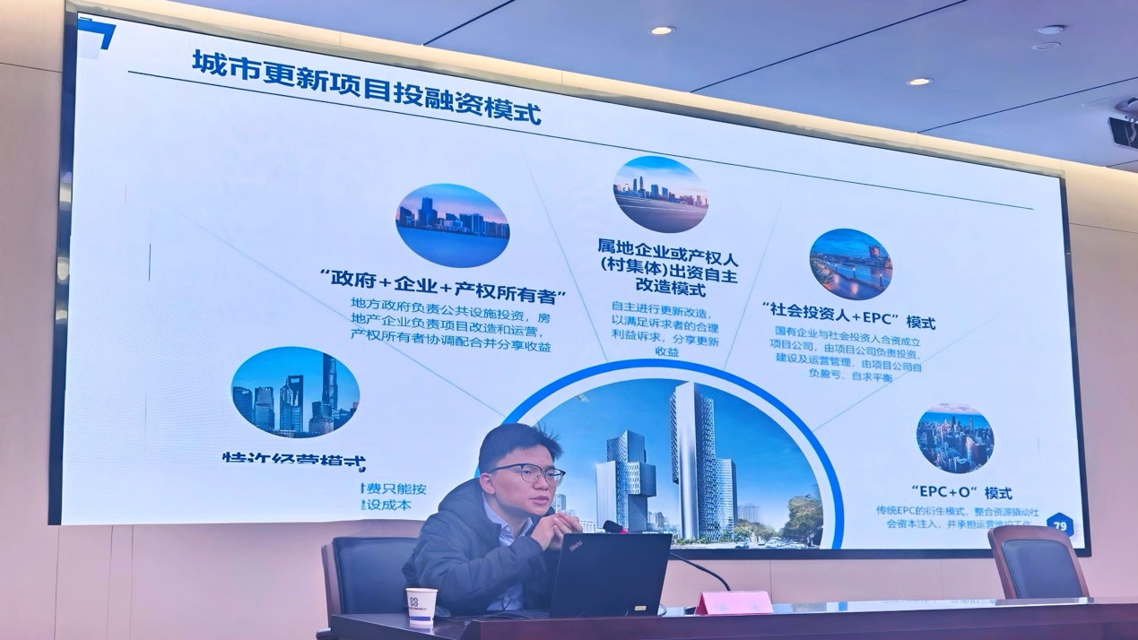 潘杰以城市更新政策導(dǎo)向作引,對現(xiàn)階段城市更新主要任務(wù)進(jìn)行深入淺出的介紹,并結(jié)合地方城市更新工作要點,為與會人員詳細(xì)介紹了各類上級資金與城市更新項目的適配性。并結(jié)合以舊換新實施案例,對城市更新工作推進(jìn)方向及推進(jìn)重點抽絲剝繭,幫助與會人員更好理解城市更新項目實施要點。